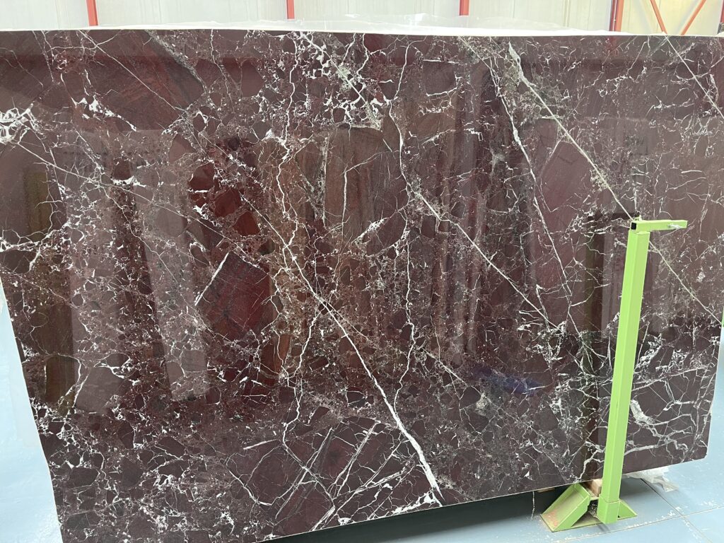 Lorsque vous visitez un parc de stockage de tranches de marbre, le Rouge Levanto peut être intimidant. Voici les critères d’expert à observer.