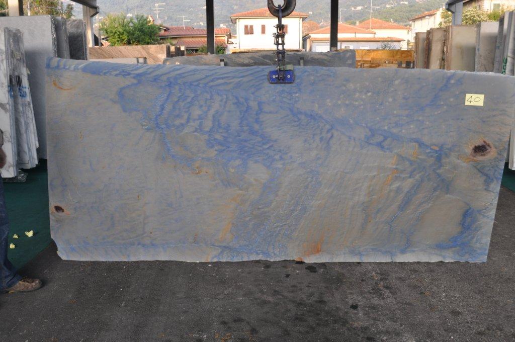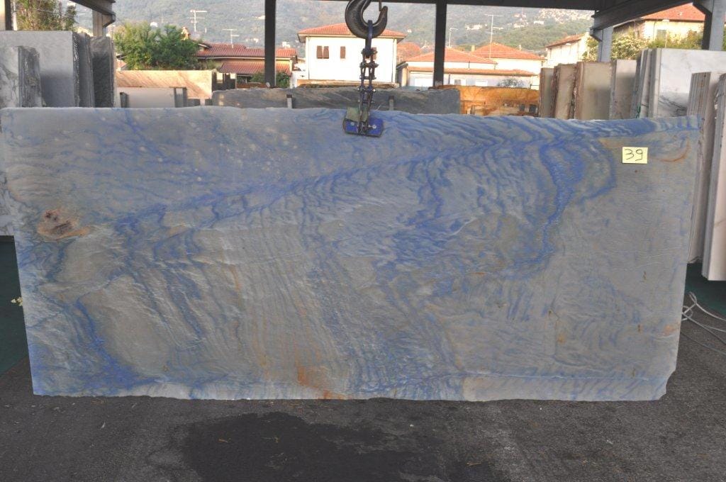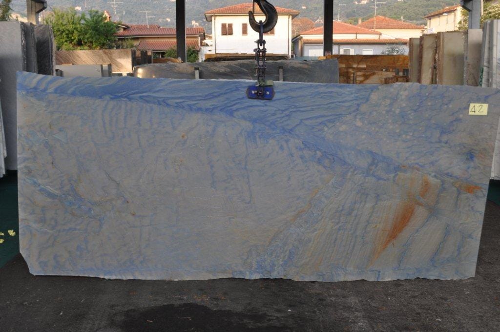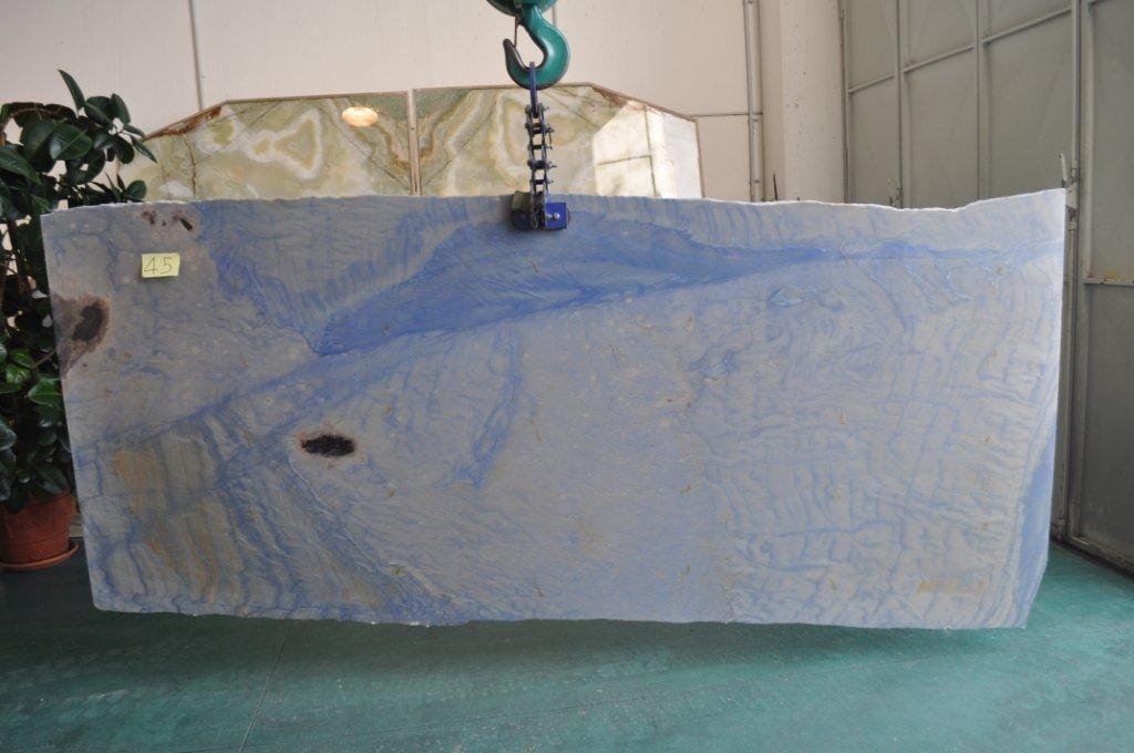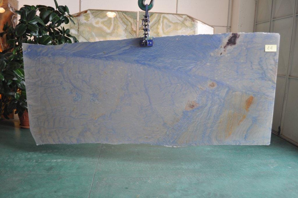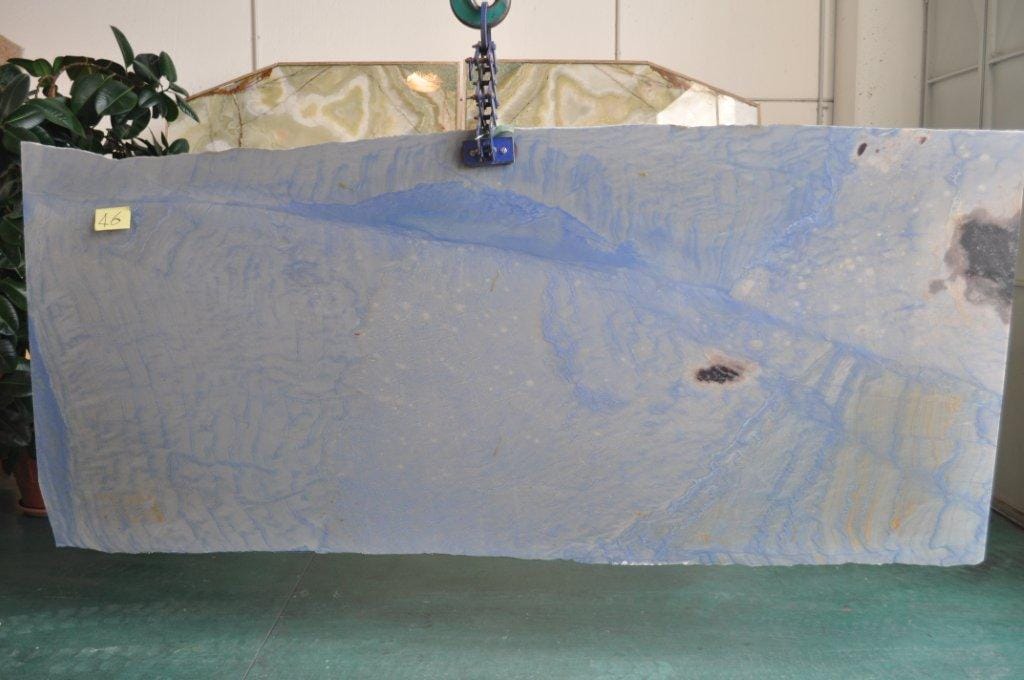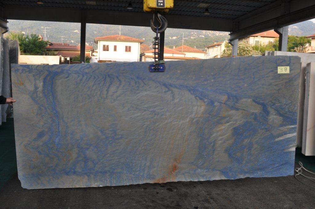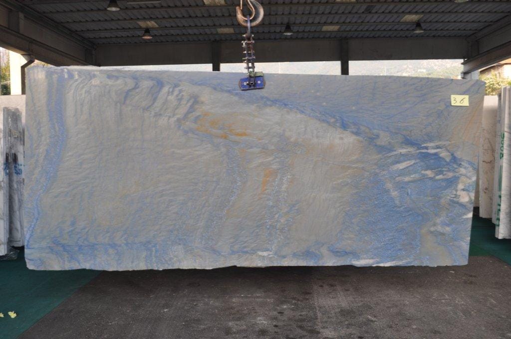 Au contraire du granit bleu Bahia, le Bleu Macauba présente un éventail de teintes plus ou moins intenses allant du bleu profond à un bleu ciel très clair, à la limite du blanc. Chaque tranche de cette pierre est unique en son genre au vu de la grande variété d’intensités et nuances.